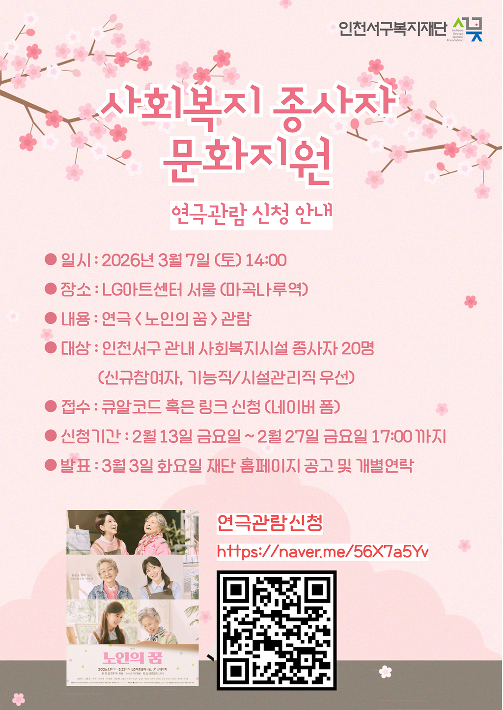 2026년 사회복지 종사자 연극관람 지원 신청 안내
