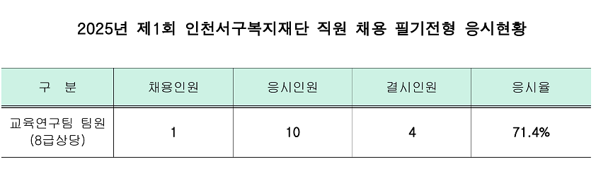 2025년 제1회 인천서구복지재단 직원 채용 필기전형 응시현황